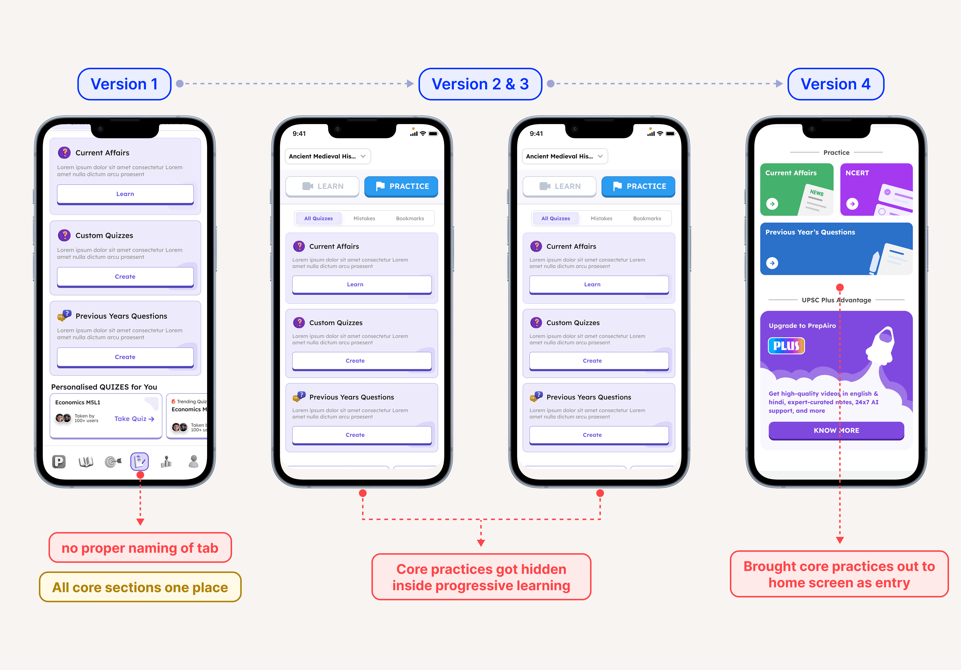 Users come to PrepAiro for specific things: NCERT content, Previous Year Questions (PYQs), Current Affairs, and structured practice. These are the core features that matter most.