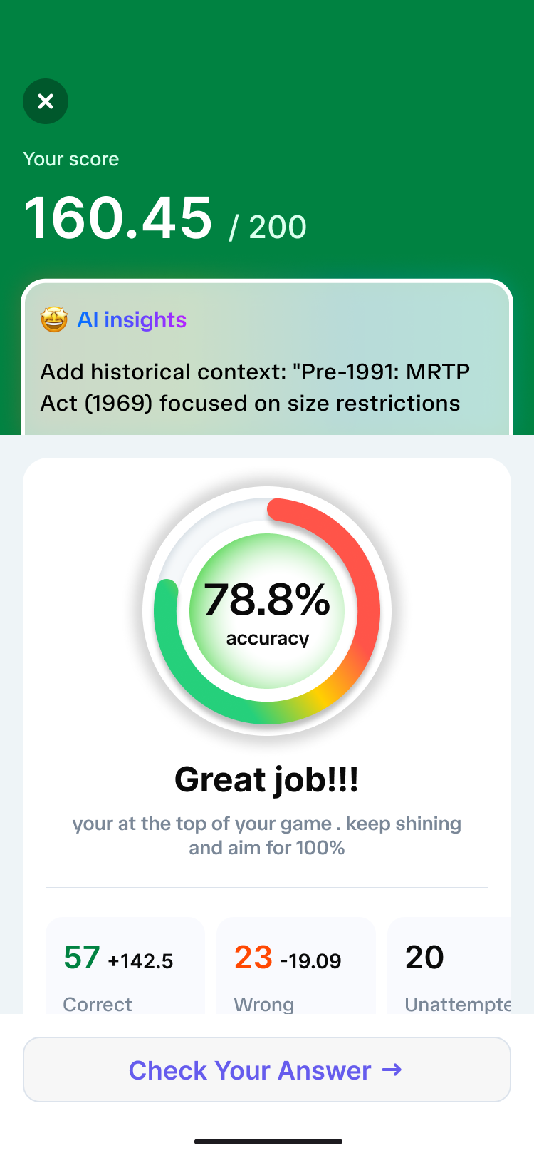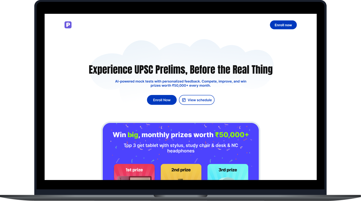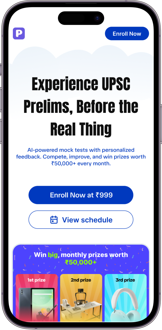 AI-powered mock tests with personalized feedback. Compete, improve, and win prizes worth ₹50,000+ every month.